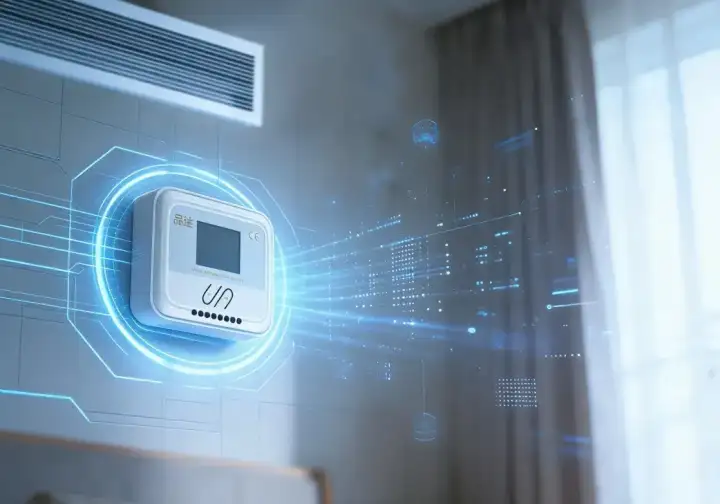 它的安装位置很隐蔽——接入到空调内机上,隐藏在出风口里,极简的线条,柔和的指示灯,像一个小小的智慧节点。不需要改动原有线路,不需要更换任何部件,就能让不同品牌的中央空调瞬间听懂米家的话。