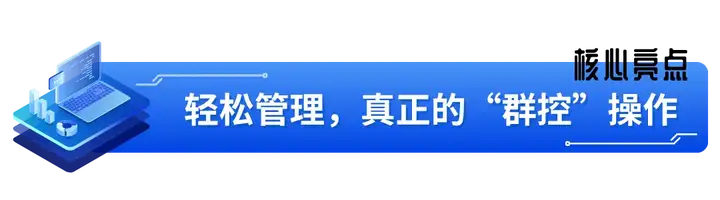不只是单台控制,更强大的是群控能力。通过“运行管控”模块,您可以: