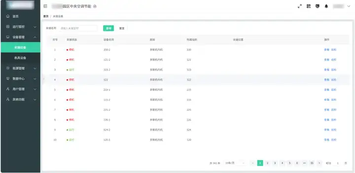 平台对中央空调、表具设备等进行统一管理,支持: