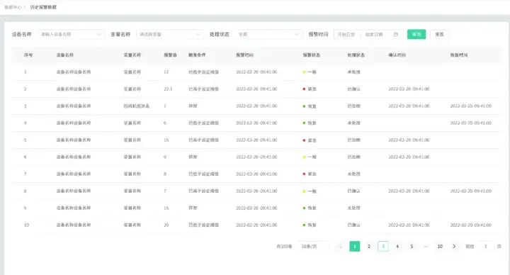 历史报警:完整记录,便于追溯